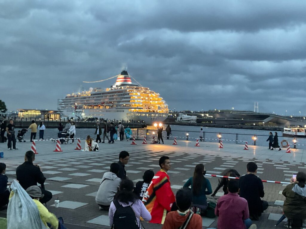 ちょうどこの日は「飛鳥Ⅱ」が停泊〜出航だったので、開催時間中に「ポー」と音がして出航していく様子が印象的でした。