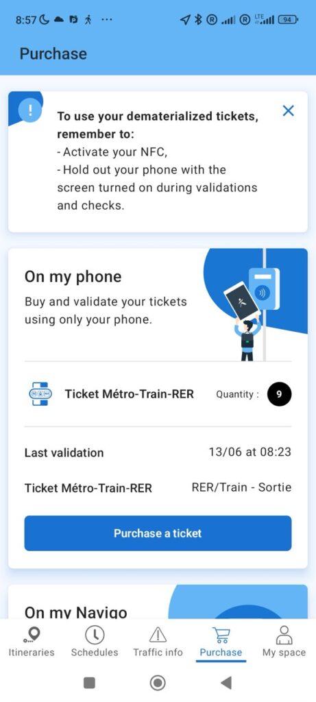 きっぷの購入には「IDF Mobilites」(もしくは「Bonjour RATP」)と「MY Navigo Tickets」というアプリが必要となります。