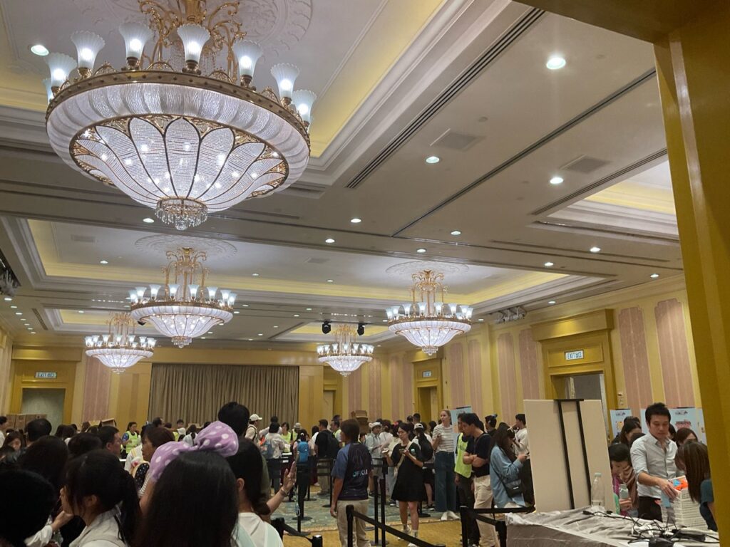 18時半ごろ到着したのですが、受け取りの列はホテルのメインエントランス近くまで伸びているほど!