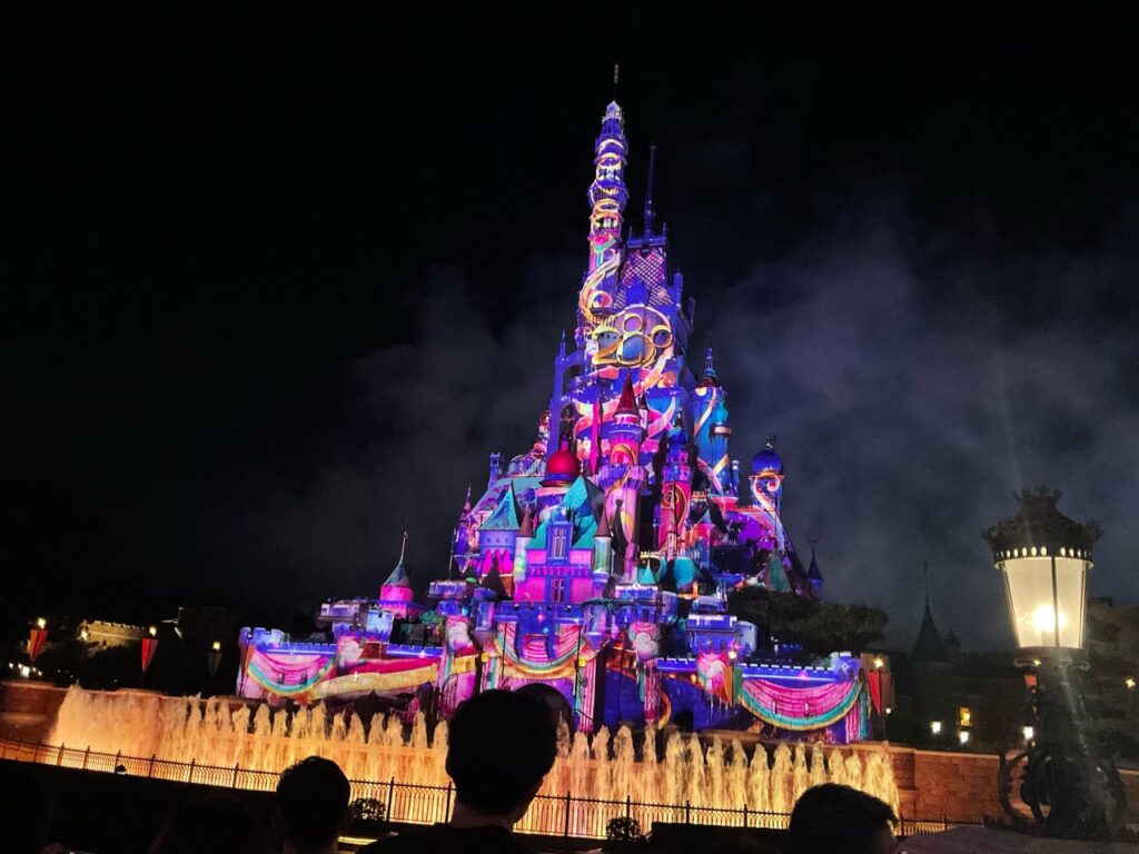 香港ディズニーランドの夜のプロジェクションマッピング「モーメンタス」。