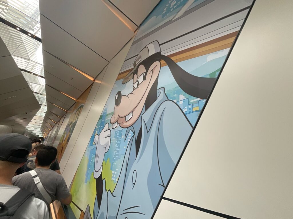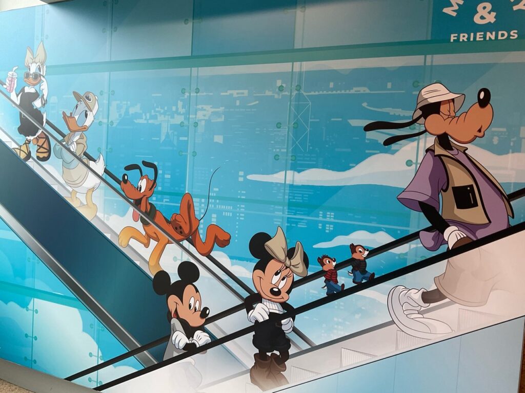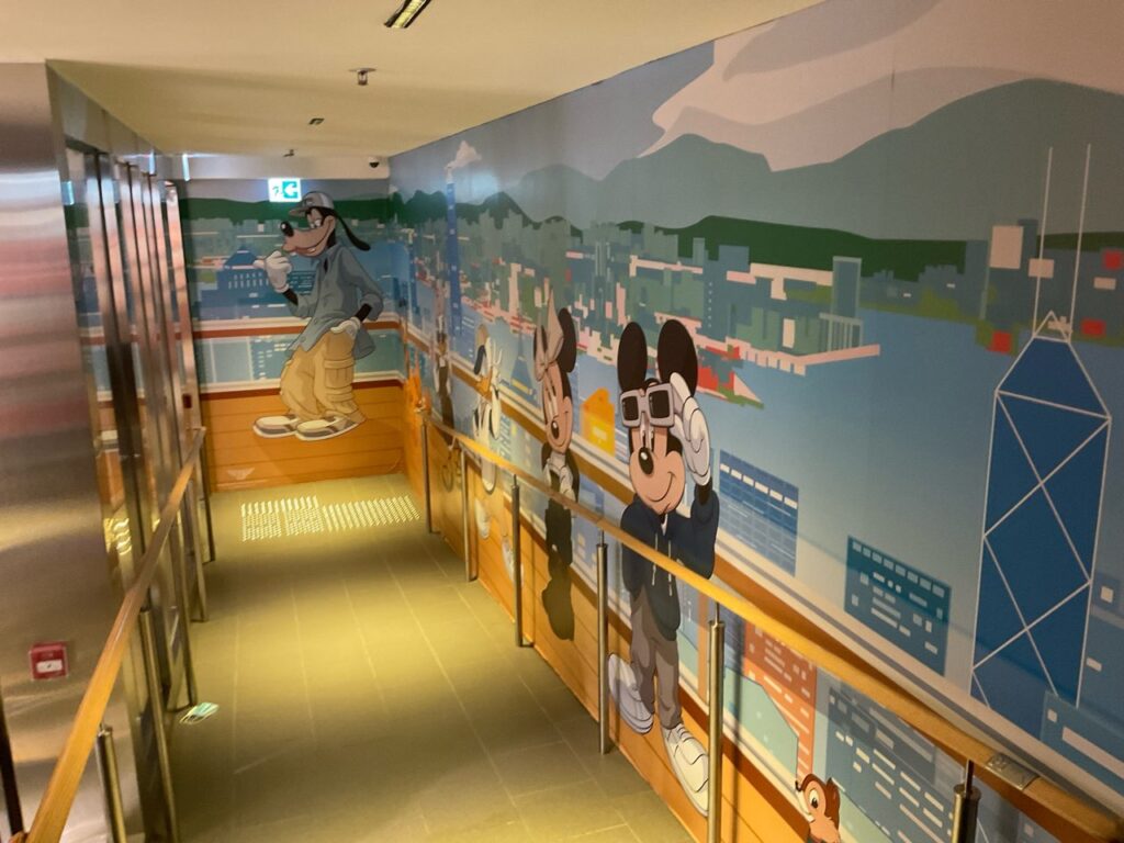 降りてすぐからミッキーたちが描かれていて、各所にフォトロケーションなどがあります。