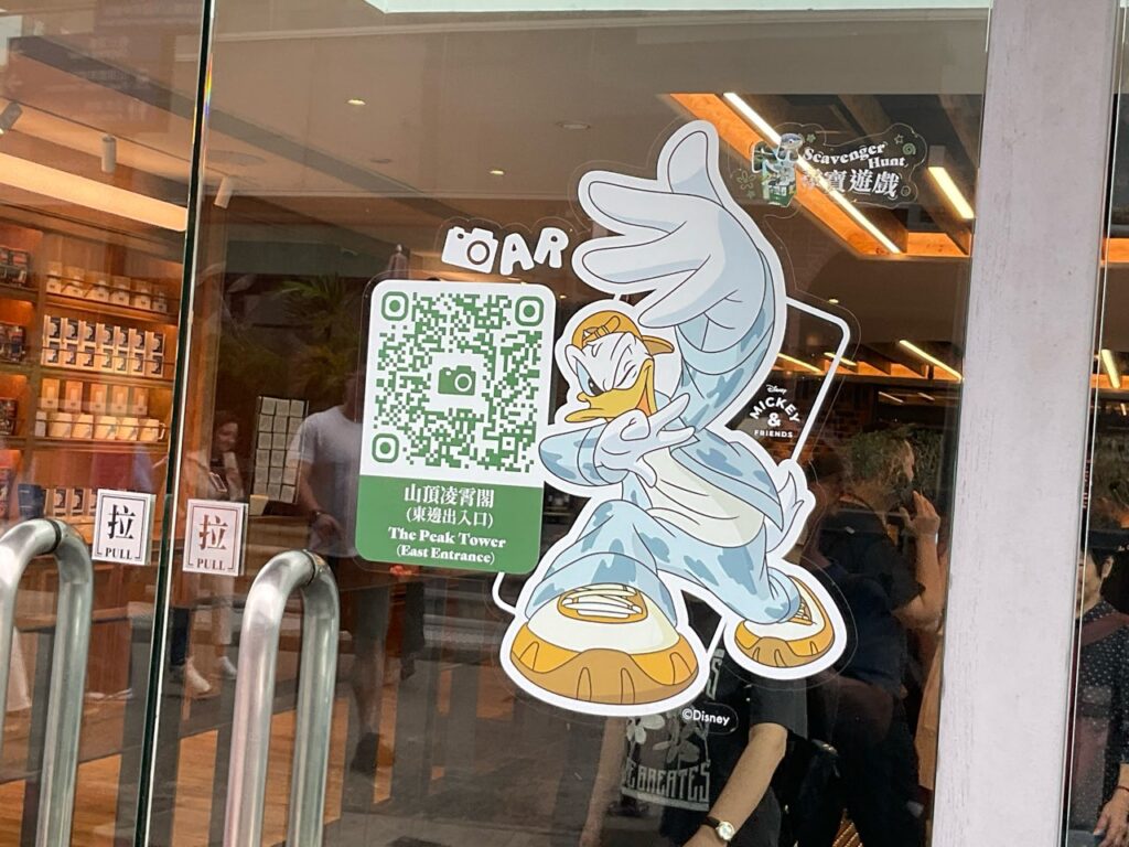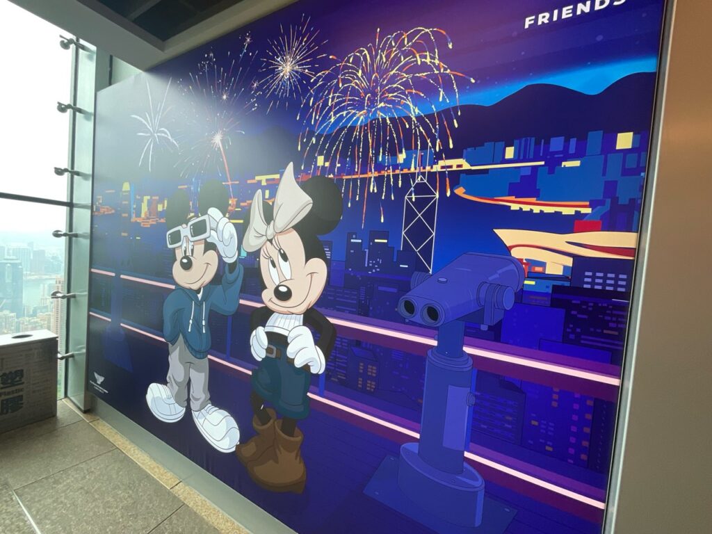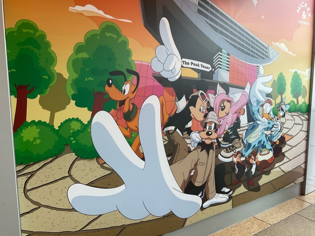 これはピークトラムの駅やピークトラム自体、そしてピークの建物などにミッキーたちのイラストやフォトスポットが置かれているものです。