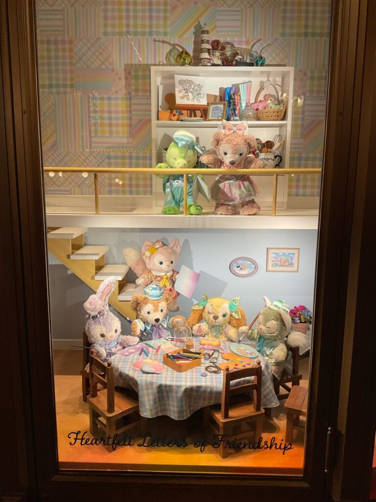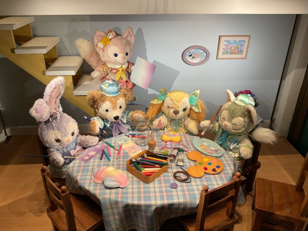 こちらはダッフィーたちがミッキーへのプレゼントを作る様子をぬいぐるみを使って表現しています。