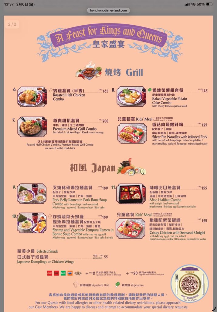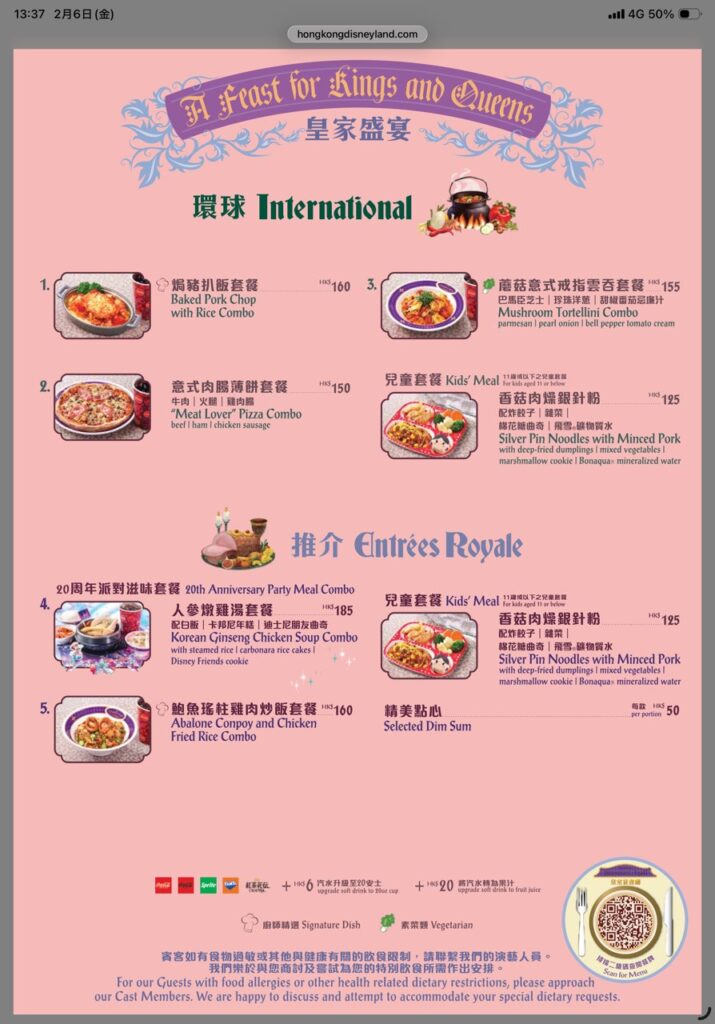 今回は香港ディズニーランドのレストラン「ロイヤルバンケットホール」の春節限定メニューをご紹介します。