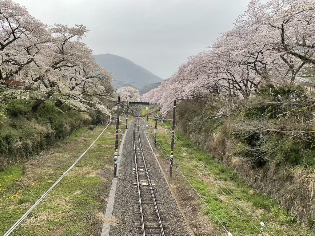 駅からはよさこい会場とは反対に歩き始め、御殿場方向にある線路沿いの桜並木へ。